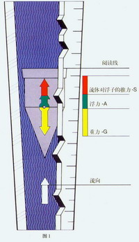 流量計測量原理 浮子式流量計是一種變面積式流量計,它通常具有一段直立的錐管和一只可以在其中自由的隨流量大小上下移動的浮子(如圖1)。當(dāng)流體自下而上流經(jīng)錐管時,流體的動能在浮子上產(chǎn)生的推力S和流體的浮力A使浮子上升。隨著錐管內(nèi)壁與浮子之間的環(huán)形流通面積增大,流體動能在浮子上產(chǎn)生的推力S隨之下降。當(dāng)推力S與浮力之和等于浮子自身重力G時,浮子處于平衡,并穩(wěn)定在某一高度上,該高度位置對應(yīng)的刻度指示流過流量計的流量。 |