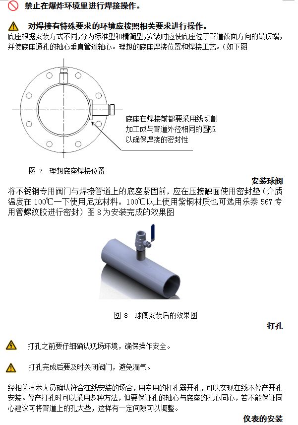 2) 將傳感器存儲腔連接螺母旋緊于專用球閥上(在旋入前需在他們之間加裝密封墊片)