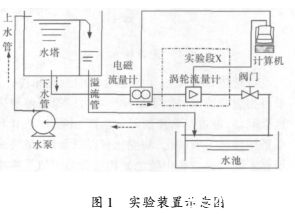 實驗是在天津大學(xué)天津市過程參數(shù)檢測與控制重點實驗室的水流量標(biāo)準(zhǔn)裝置上完成的,實驗管徑為100mm,圖1為實驗裝置示意圖。