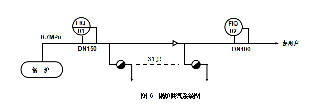 熱力公司懷疑蒸汽流量計(jì)不準(zhǔn),因?yàn)殄仩t房出口的流量計(jì)FIQ01穩(wěn)定顯示2.5 t/h左右的流量,而用戶(hù)端流量計(jì)FIQ02顯示時(shí)有時(shí)無(wú),流量zui大時(shí)也只有0.75 t/h。